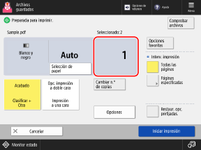 Puede imprimir directamente archivos PDF, XPS, JPEG y TIFF en un dispositivo de memoria USB insertado en el equipo desde el panel de control.