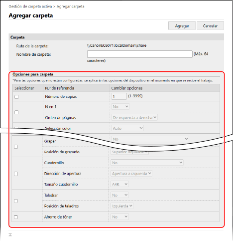 Aparece la pantalla [Agregar carpeta].