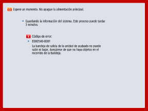 Antes de ponerse en contacto con un representante del servicio técnico, reinicie el equipo para ver si desaparece el mensaje de error. Si el mensaje de error reaparece, póngase en contacto con un representante del servicio técnico e informe de los síntomas.