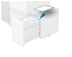 Si hay papel atascado en el lateral de Depósito POD Sencillo C o Depósito de Papel E, sáquelo suavemente tirando en el sentido de la flecha.