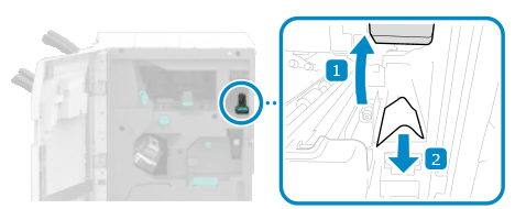 Atascos de papel dentro de la unidad grapadora de cuadernillos (Solo para Unidad de Acabado de Cuadernillos AQ)