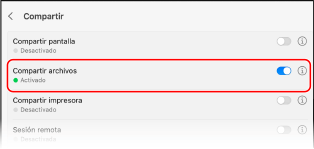 Establezca [Compartir archivos] en activado y haga clic en