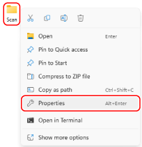 Right-click the created folder, and click [Properties].
