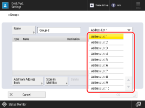 * Groups registered to one-touch buttons are also registered and displayed in the Address Book (One-Touch Address List), and you can select them when you specify destinations from the Address Book.
