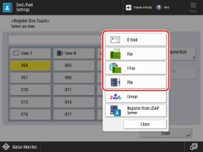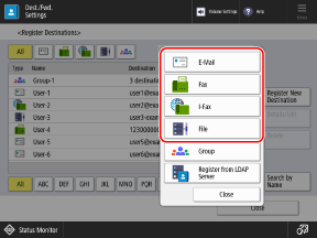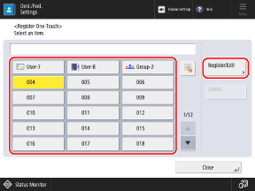 * Destinations registered to one-touch buttons are also registered and displayed in the Address Book (One-Touch Address List), and you can select them when you specify destinations from the Address Book.