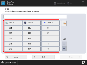 [Home] ScreenYou can also register destinations to one-touch buttons from the scan (Scan and Send) or fax screen.