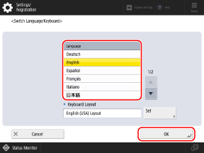 To change the keyboard layout, select the display language, and press [Set].