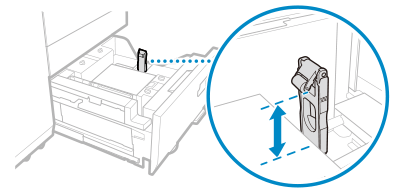 Hold the lever and slide the rear edge retainer to align it with the size indicator of the loaded paper.