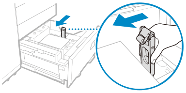 If you need to lift up the lifter (for example, if you drop objects inside the paper deck), do not lift up the lifter more than 50 mm (2") or diagonally, as this may result in a malfunction or damage to the machine.