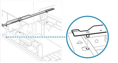 Put Side Guide Plate Fixing Bracket-A on the paper deck by inserting the positioning pin into the matching hole.