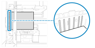 If you have readjusted the distance between the side guide plates, check whether the paper stack is now in contact with two or more of the ridges on the left wall of the paper deck.