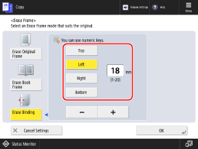 * If [Erase Binding] is set, the three edges other than the edge with the punch holes are always erased with a 4-mm (1/8") frame.