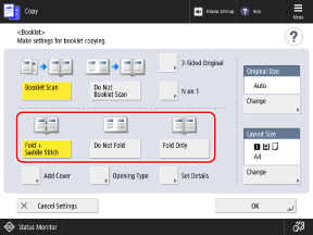 Copy ScreenThe [Booklet] screen is displayed.