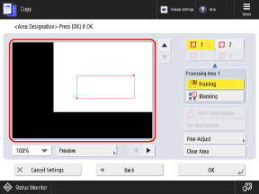 Copy ScreenThe [Area Designation] screen is displayed.