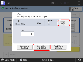 Press [Scan Settings of Next Block], and configure the copy settings for the second original.