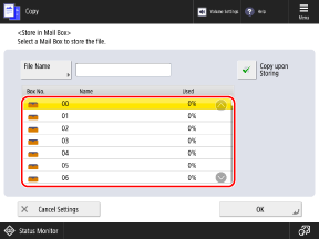 You can configure the settings to store the data of copied originals in the Mail Box on the machine. You can also configure the settings to only store the data without making copies.