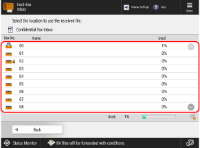 You can also directly specify the Confidential Fax Inbox by using the numeric keys to enter the box number.