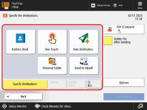 By registering the store location for received faxes as a button on the [Home] screen, you can call up the location from the [Home] screen with a single press of a button. Adding Buttons to the [Home] Screen (Personal and Shared Buttons)
