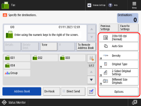 You can also press [One-Touch] to specify a destination registered to a one-touch button. Specifying Destinations with One-Touch Buttons