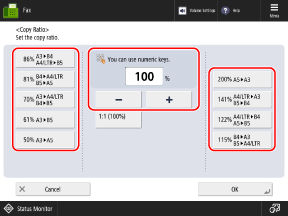 * If this is set to [Long Original], the original can only be placed in the feeder. In addition, the ratio is fixed at 1:1 (100%).