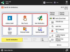 You can press [Previous Settings] to recall the settings used to send scanned data in the past. The sending destination is also applied together with the settings that are called up.