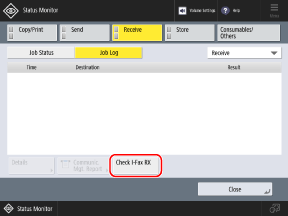 If [Check I-Fax RX] is not displayed, select [Receive] in the pulldown menu at the top right of the screen.
