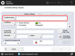 Press [Condition Name], enter a name for the forwarding condition, and press [OK].