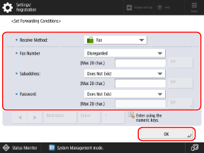 Set the forwarding or store conditions, and press [OK].