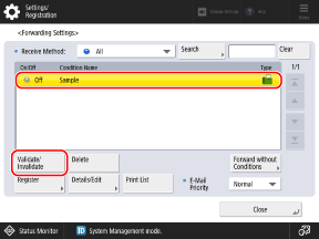 Select a forwarding condition that is registered, and press [Validate/Invalidate].