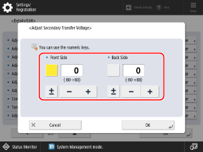 Press [Change] of [Adjust Secondary Transfer Voltage].