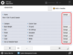 [Paper Type Management Settings], select the paper type, and press [Details/Edit].