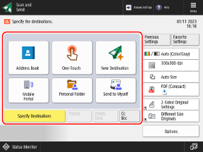 Configuring the Detailed Settings When SendingTo specify a destination from the Address Book, press [Send to Dest. Selected from Address Book].
