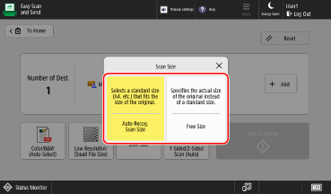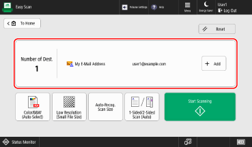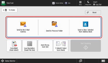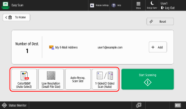 With Easy Scan and Send/Easy Scan, you can configure basic functions such as the specified destinations and color settings by performing simple button operations.