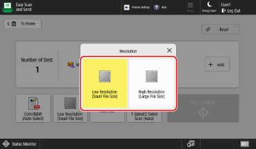 Increase the resolution when you want to scan originals more finely, and decrease the resolution for a smaller file size.