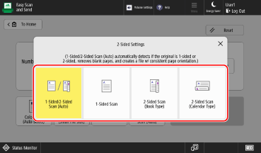 This setting is available only when [1-Sided/2-Sided Scan (Auto)] is configured in the 2-sided scan settings.