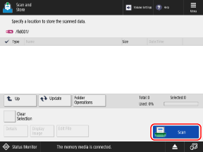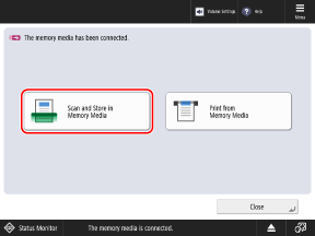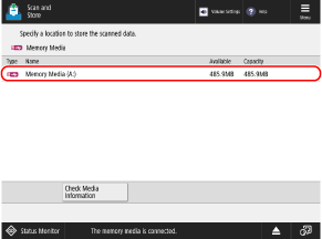 You can press [Check Media Information], select the USB memory device, and then press [Details] to check the serial number and available capacity of the USB memory device.