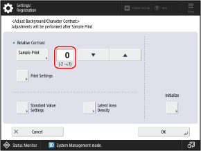 The sample print is printed, and the [Adjust Background/Character Contrast] screen is displayed again.