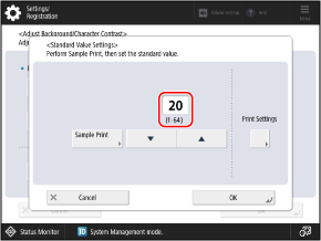 The sample print is printed, and the [Standard Value Settings] screen is displayed again.