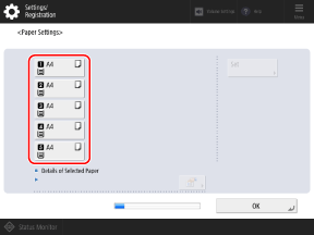 Check that the sizes of the loaded paper are displayed on the [Paper Settings] screen.