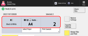 * When files are merged, the print settings saved to the files are disabled and the default setting are applied.