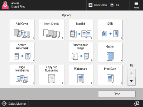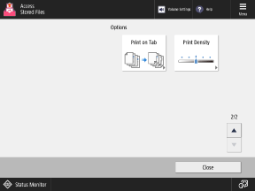 Press the buttons on this screen to configure the detailed print settings. After configuring the print settings, press [Close] to return to the print settings screen.