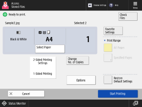 After checking or changing the print settings, press [Start Printing] to perform printing.