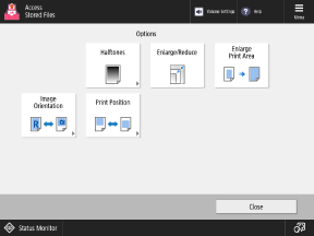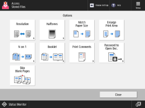 Press the buttons on this screen to configure the detailed print settings. After configuring the print settings, press [Close] to return to the print settings screen.