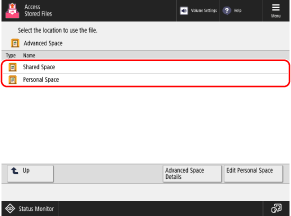 [Home] ScreenThe screen for selecting the storage space is displayed.