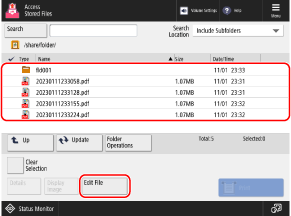 You can use the control panel of the machine to perform the following operations for files saved to Advanced Box: