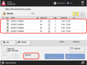 When operating and editing files using Remote UI from a computer, operate and edit the files from [Access Received/Stored Files] on the Portal page. However, you cannot use Remote UI to operate and edit some items. Managing the Machine from a Computer (Remote UI)