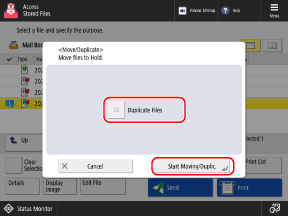 When Moving or Copying Files to a Storage Area of the Hold Function (Only on Models with the Hold Function)