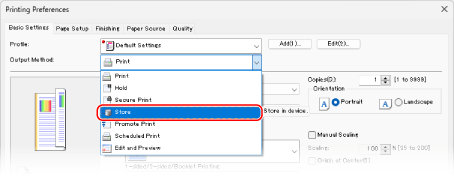 In [Output Method], select [Store].