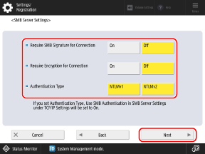 *2When you set [Authentication Type] in Step 7, [Use SMB Authentication] in [SMB Server Settings] is linked and enabled.