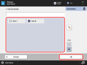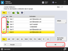 Cochez les cases des destinataires à enregistrer dans le groupe, et appuyez sur [OK].